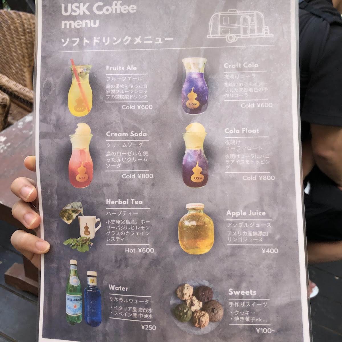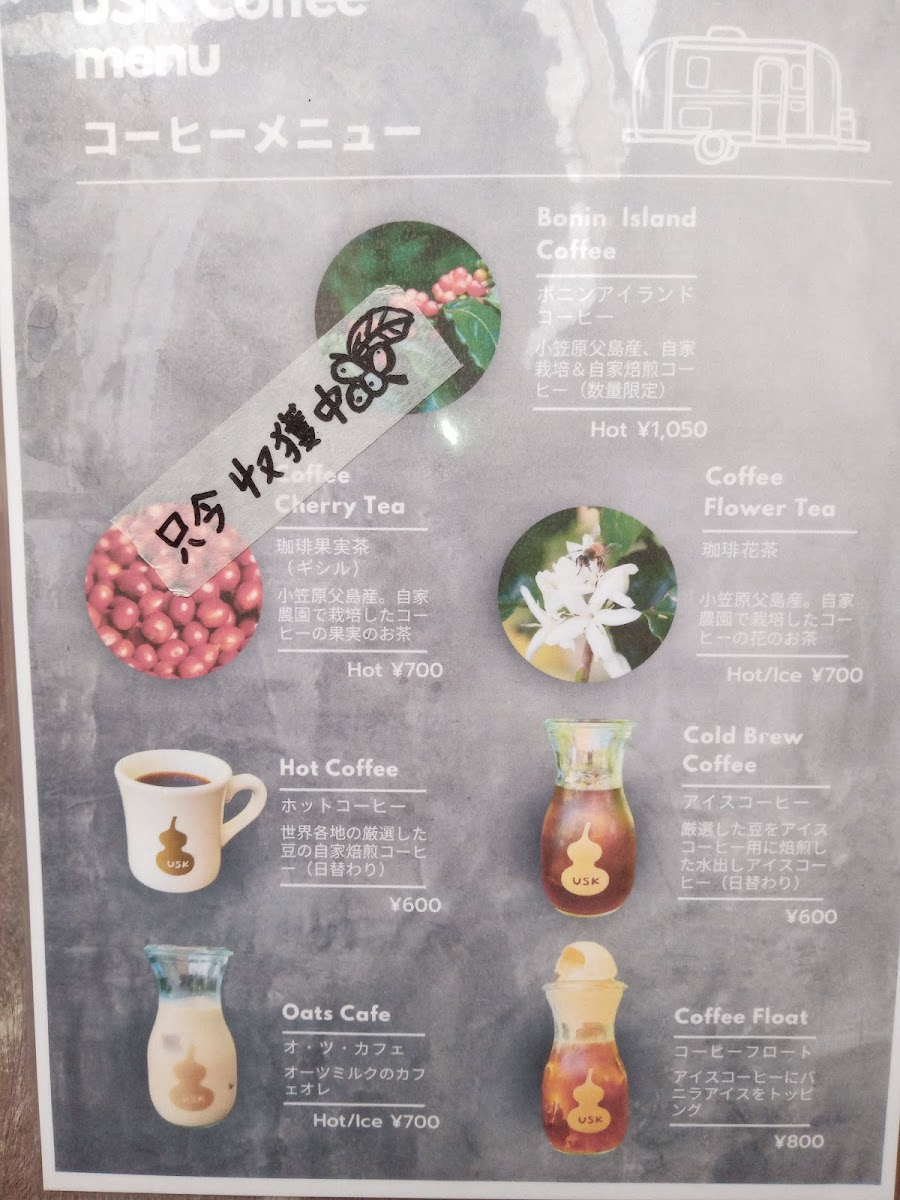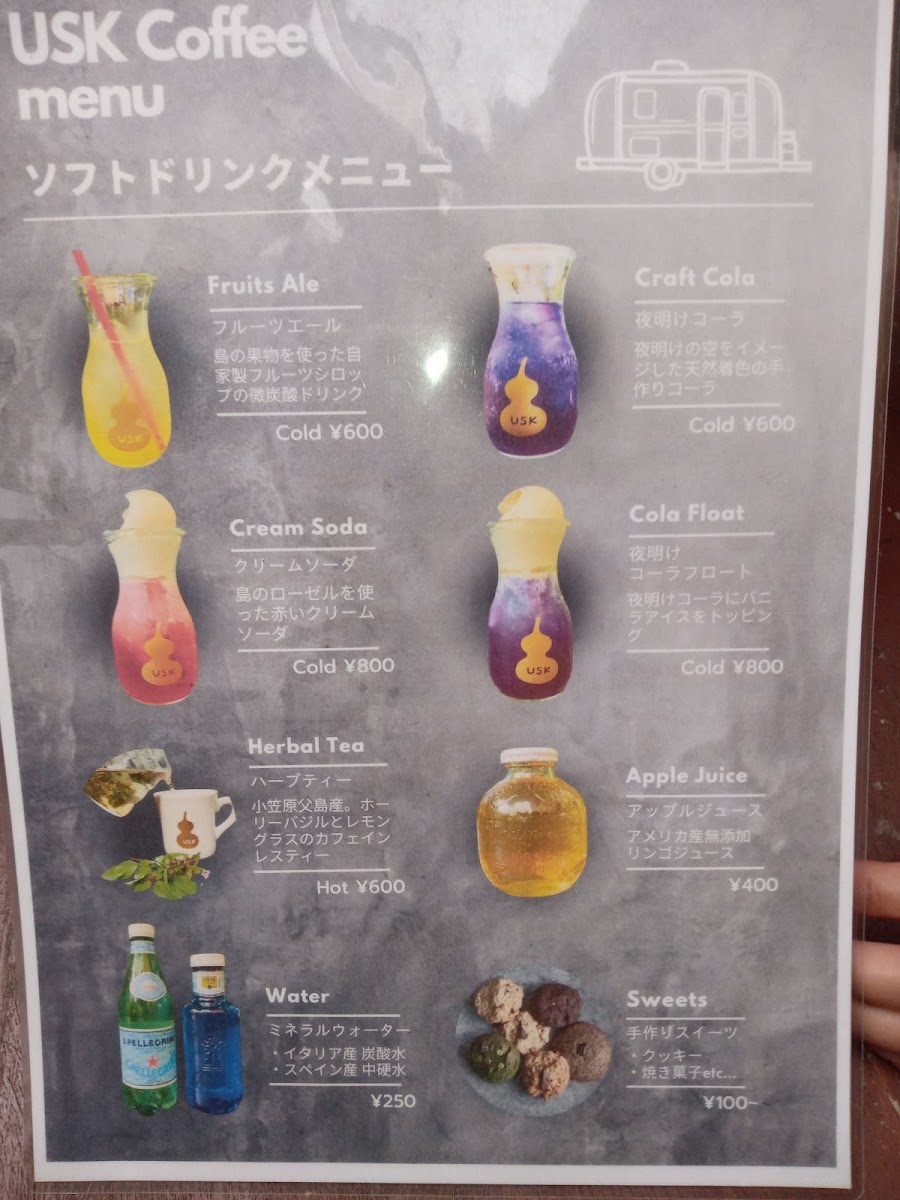 At Usk Coffee, the menu feels like a compact showcase of island character expressed through coffee and desserts, where simple presentations carry memorable flavors. The foundation is classic カフェ and アイス コーヒー, clean and straightforward, letting the beans speak without distraction. For those who enjoy a playful twist, コーヒーフロート adds creamy indulgence to the coffee’s bitterness, while クリームソーダ brings a nostalgic, refreshing contrast. A standout highlight is 貴重な小笠原コーヒー, which emphasizes the rarity and local pride of Ogasawara-grown beans, offering a taste that feels rooted in place rather than mass-produced. This sense of locality continues with ボニンアイランドコーヒー アイス, a chilled expression that remains aromatic and smooth even over ice. Dessert pairings are a major strength of the menu, especially ボニンアイランドコーヒーとカントリープリン and コーヒーとプリン, where the gentle sweetness of pudding balances the coffee’s depth. More adventurous sweets like フローズンパッションパンナコッタ and パッションパンナコッタ 美味しいよ introduce tropical brightness, adding a refreshing island note that feels perfectly suited to the setting. The house creativity really shines in combinations such as uskコーヒー バナナシフォンケーキとコーヒーフロート サイコーです, which layers soft banana chiffon cake with coffee and ice cream for a satisfying, comforting treat. Beverage options beyond coffee are equally interesting, from the spiced, refreshing クラフトコーラ to the unique コーヒ豆の皮のドリンク, which highlights sustainability and curiosity by transforming coffee bean husks into a drinkable experience. Altogether, the menu reads as a thoughtful collection of drinks and desserts that balance familiarity with local identity, making each item feel intentional and reflective of the relaxed yet distinctive atmosphere of the island café.